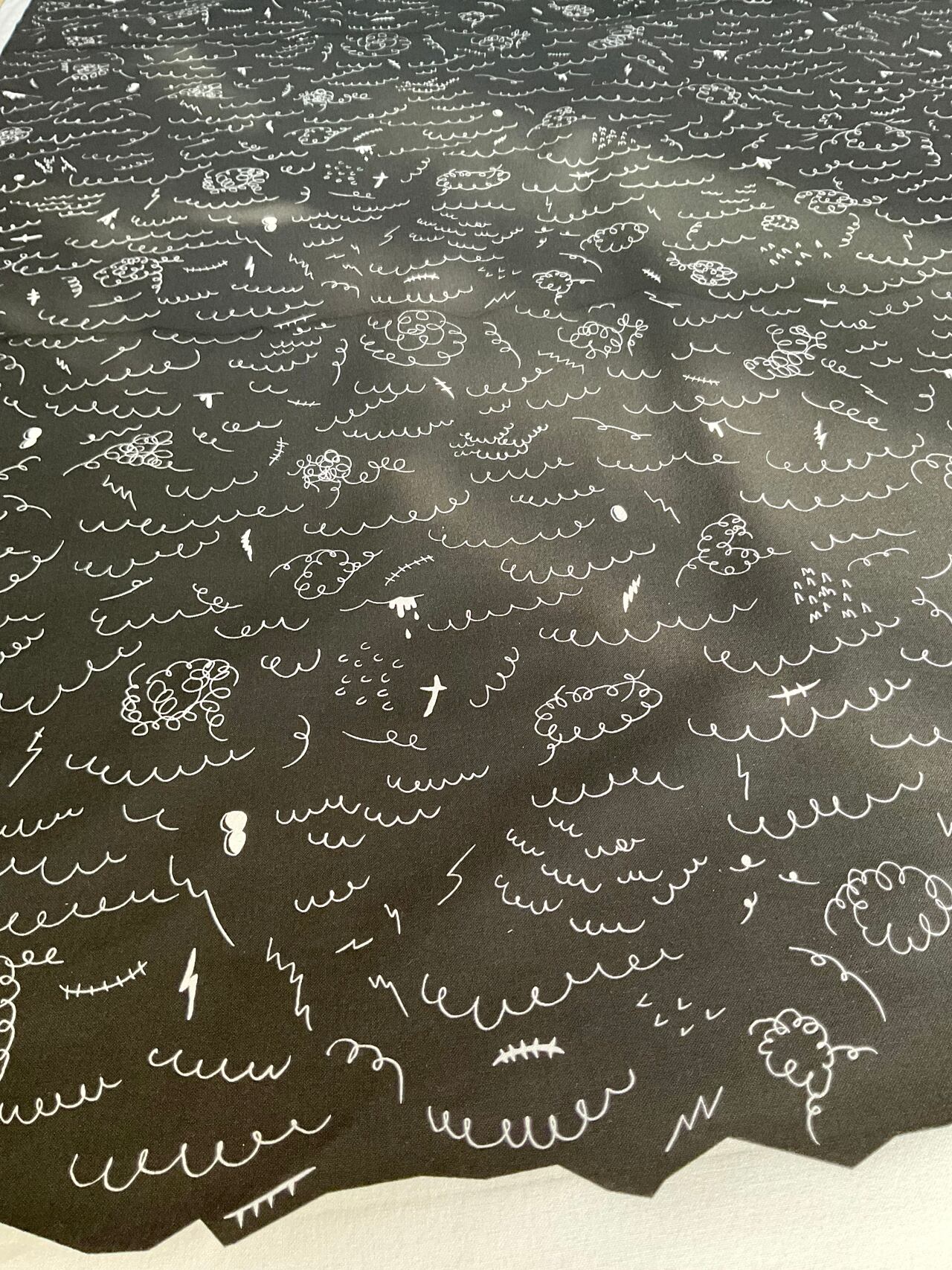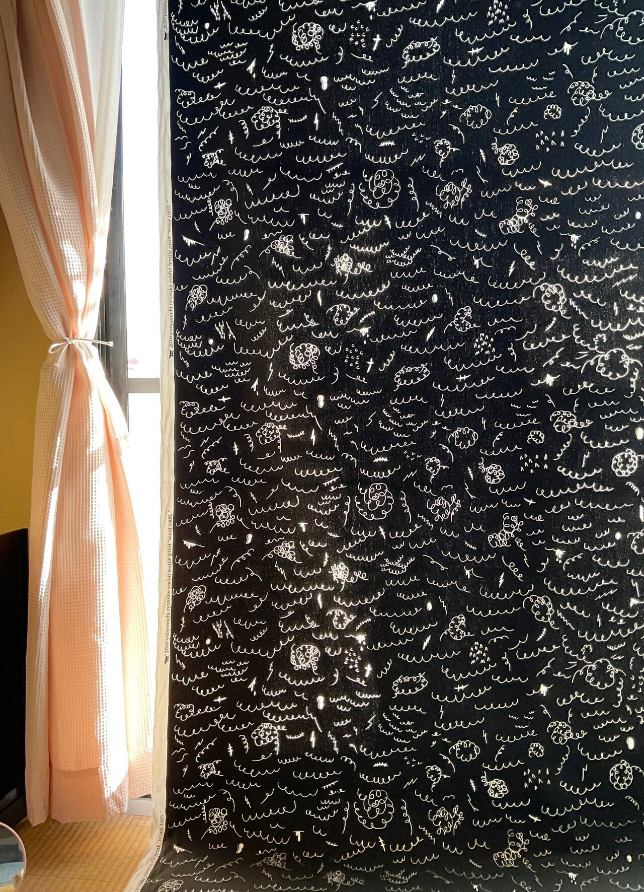 耳付きの生地幅がそのままカーテンの幅(約110cm)になります。