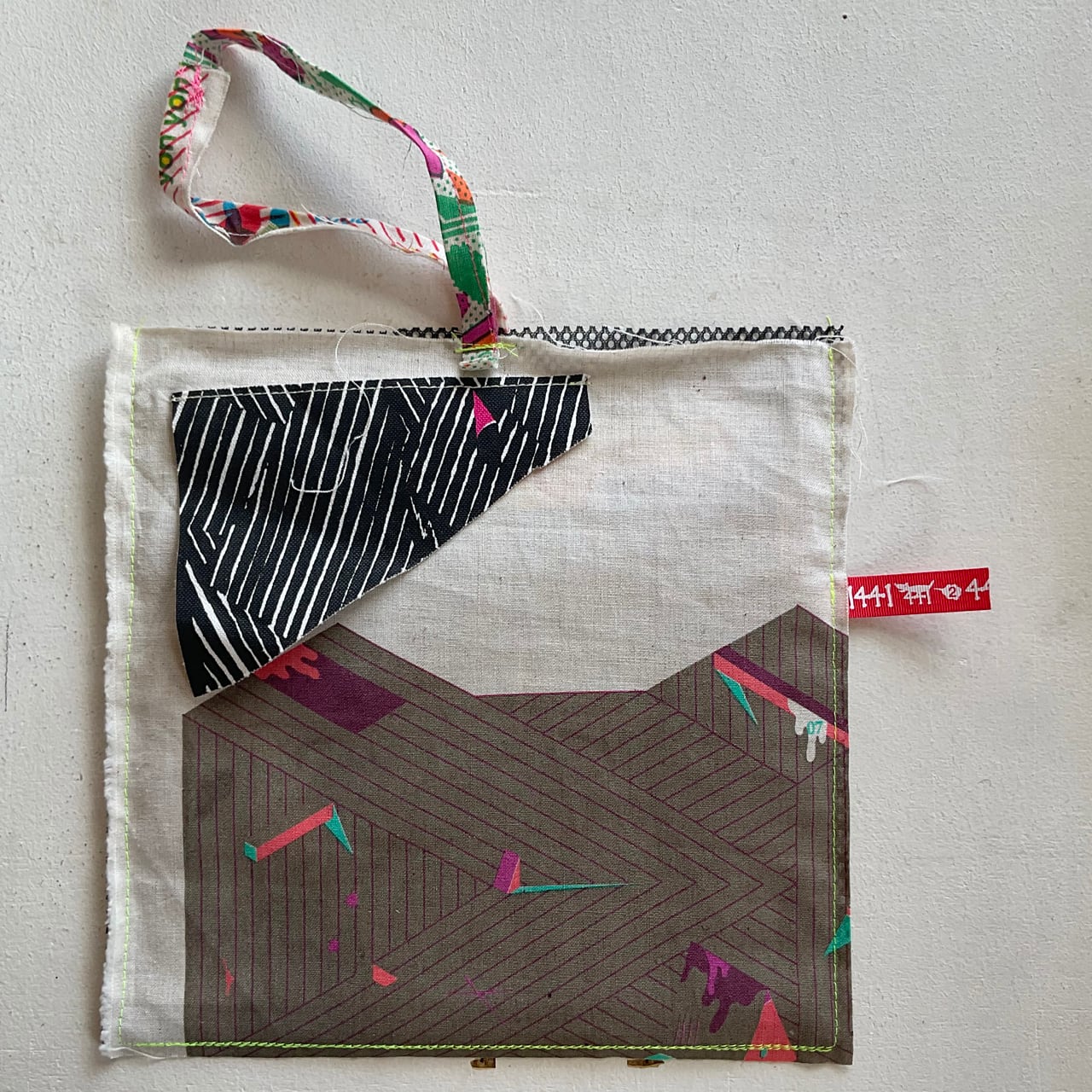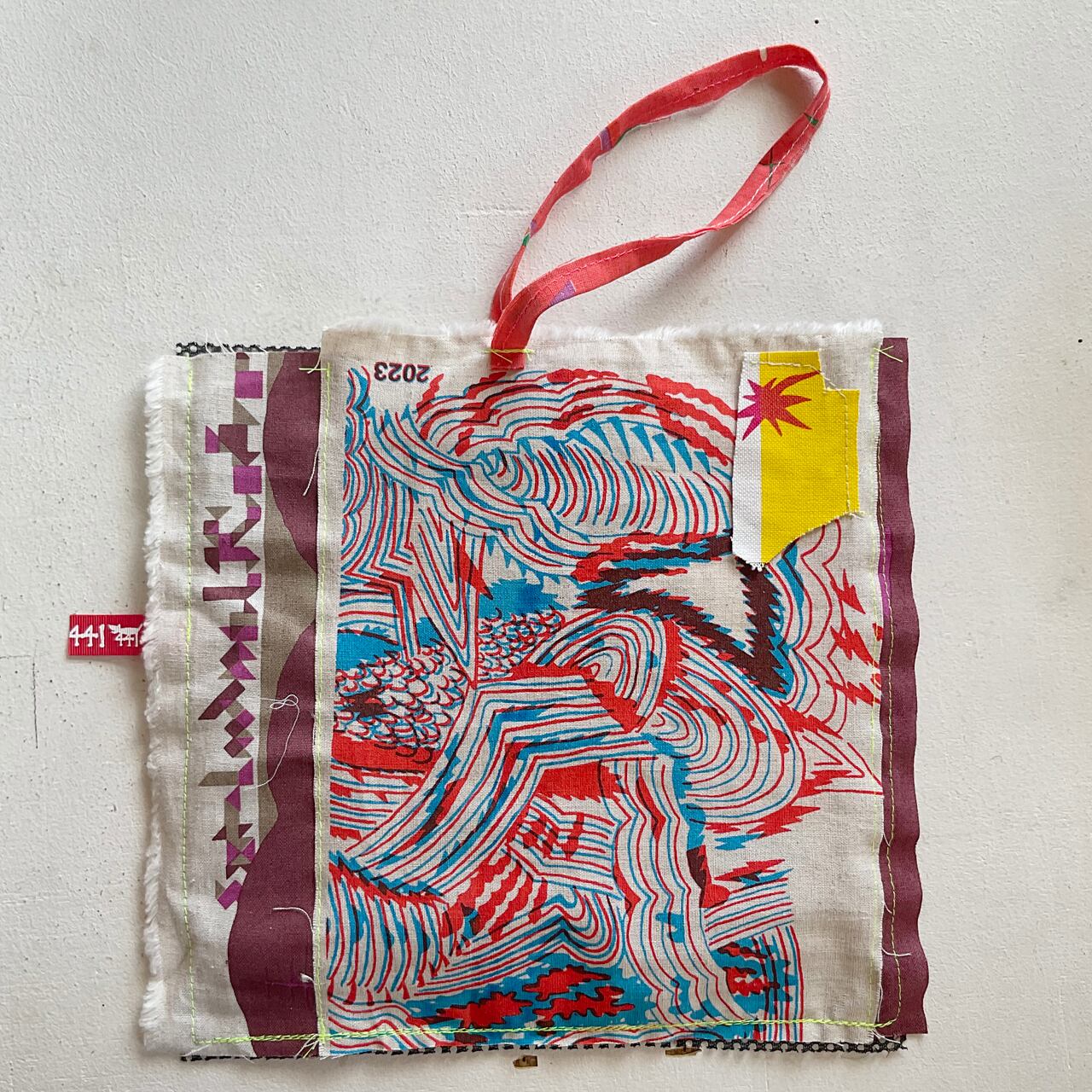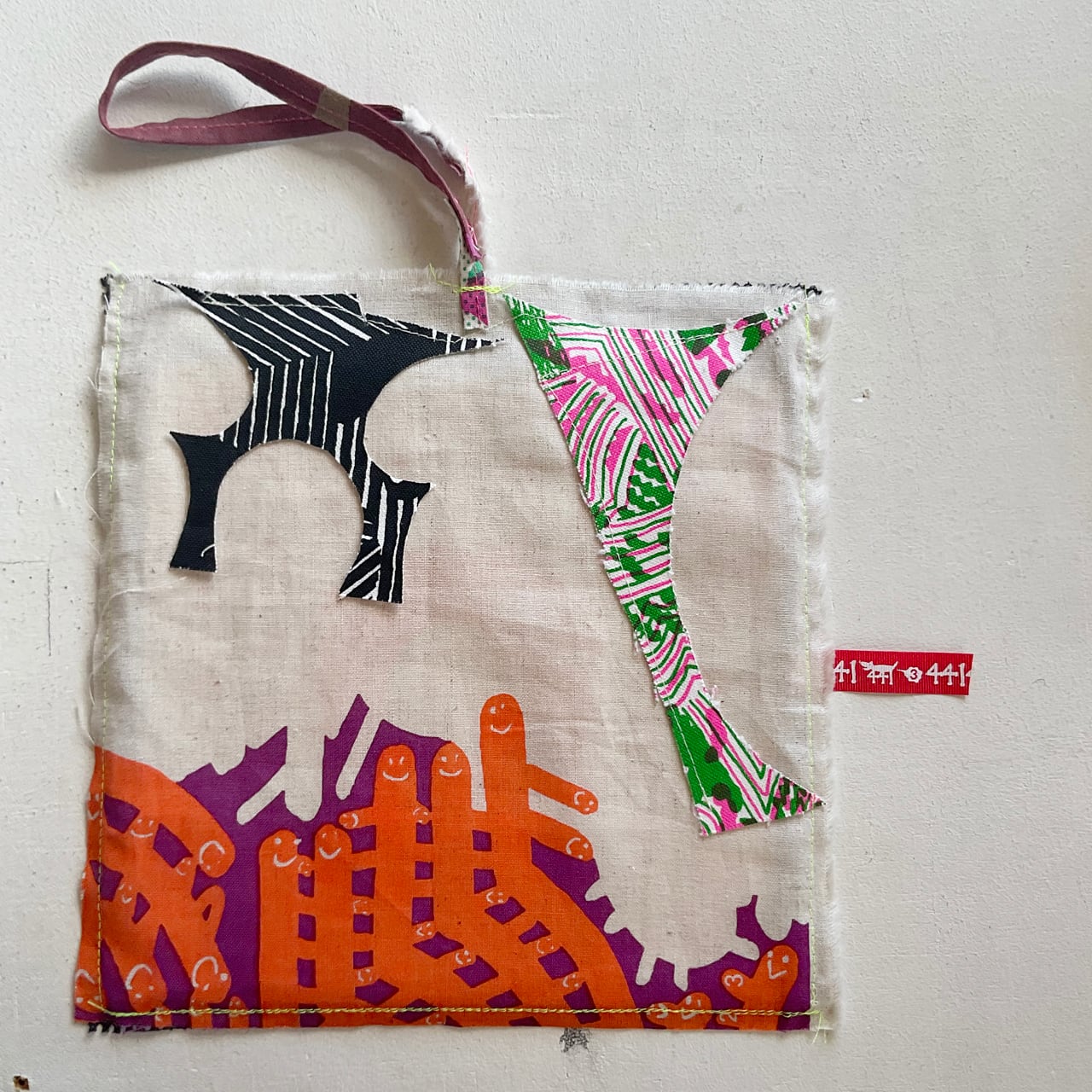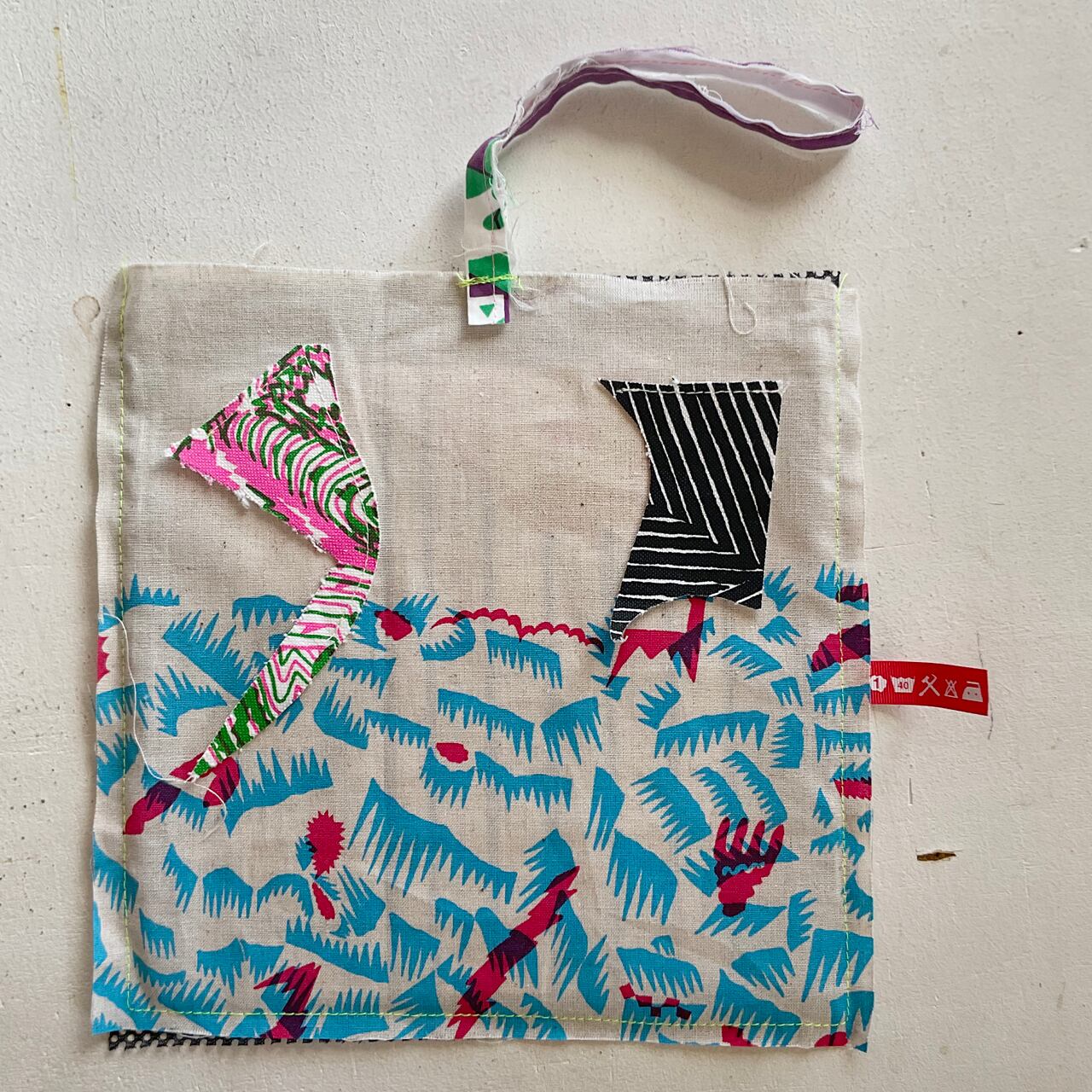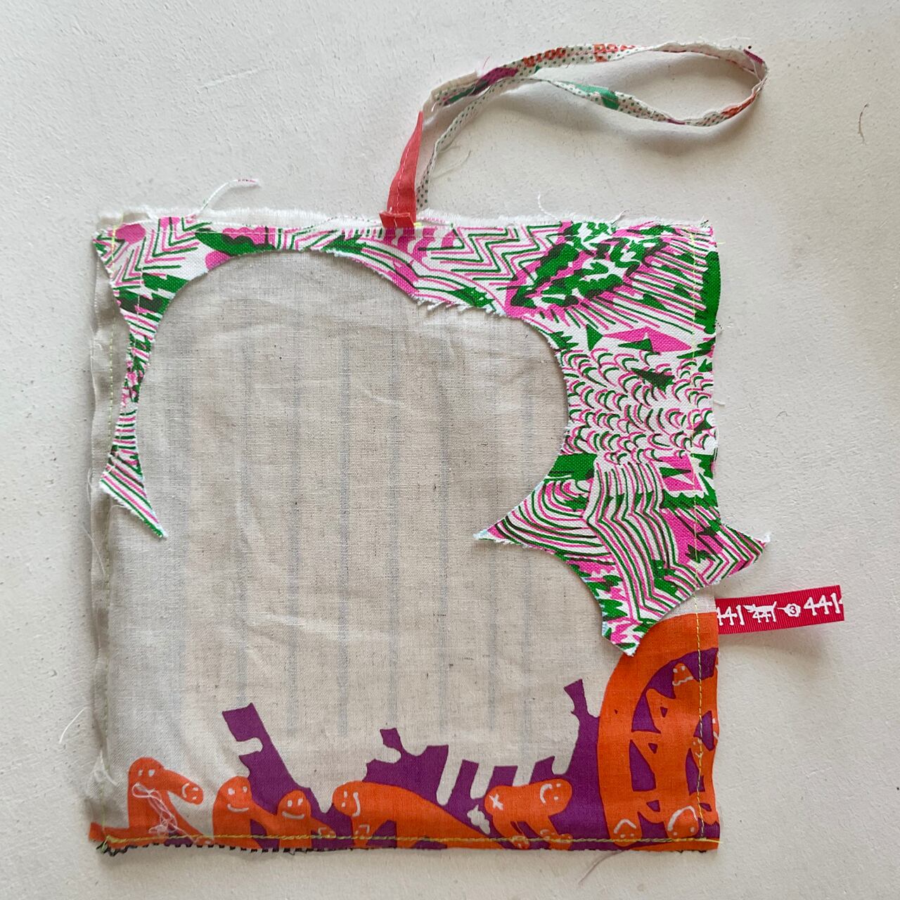 プリント生地のハギレで制作したバッグです。