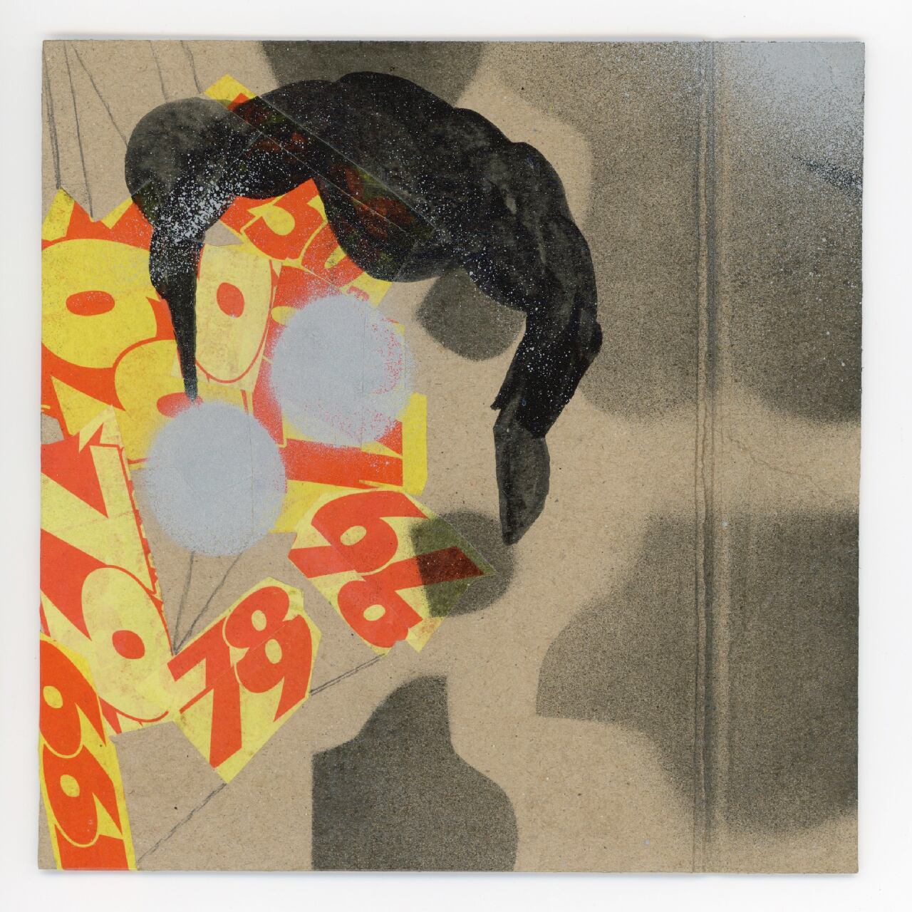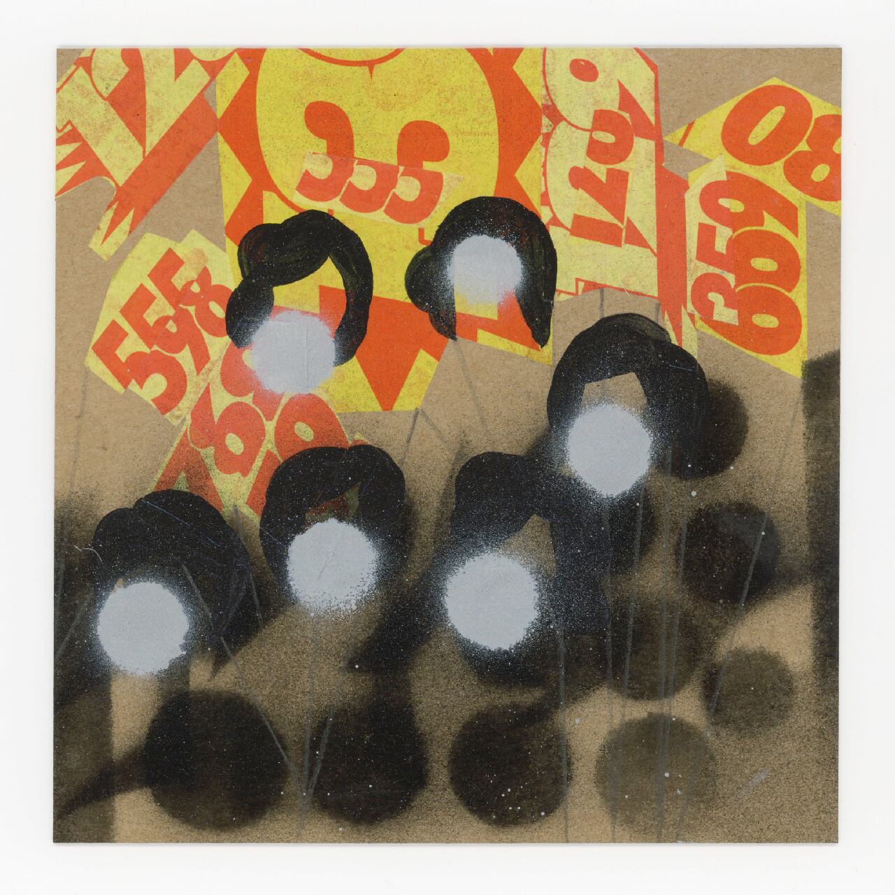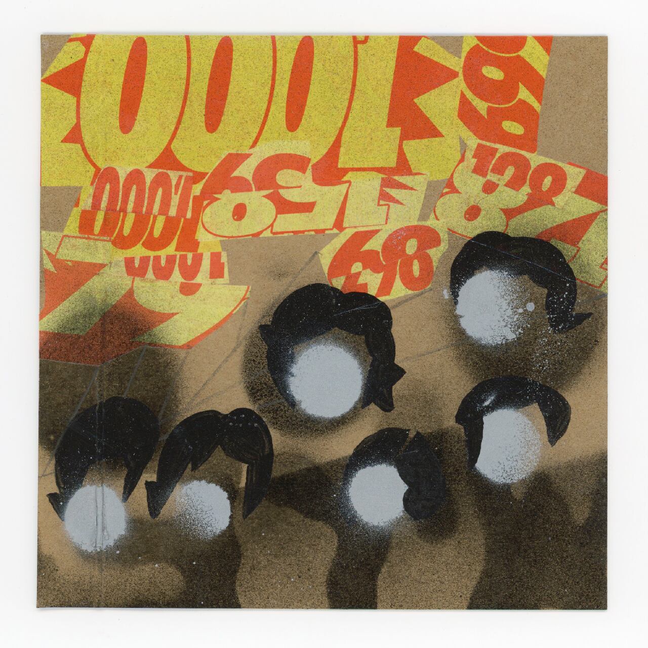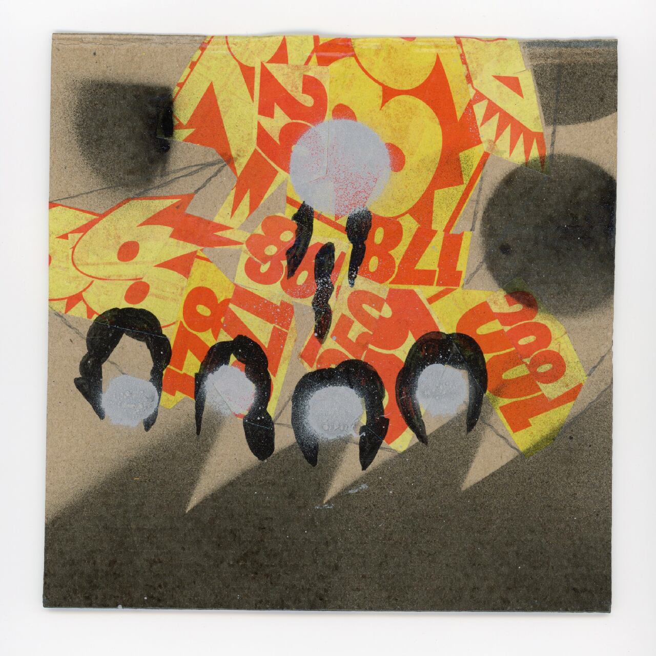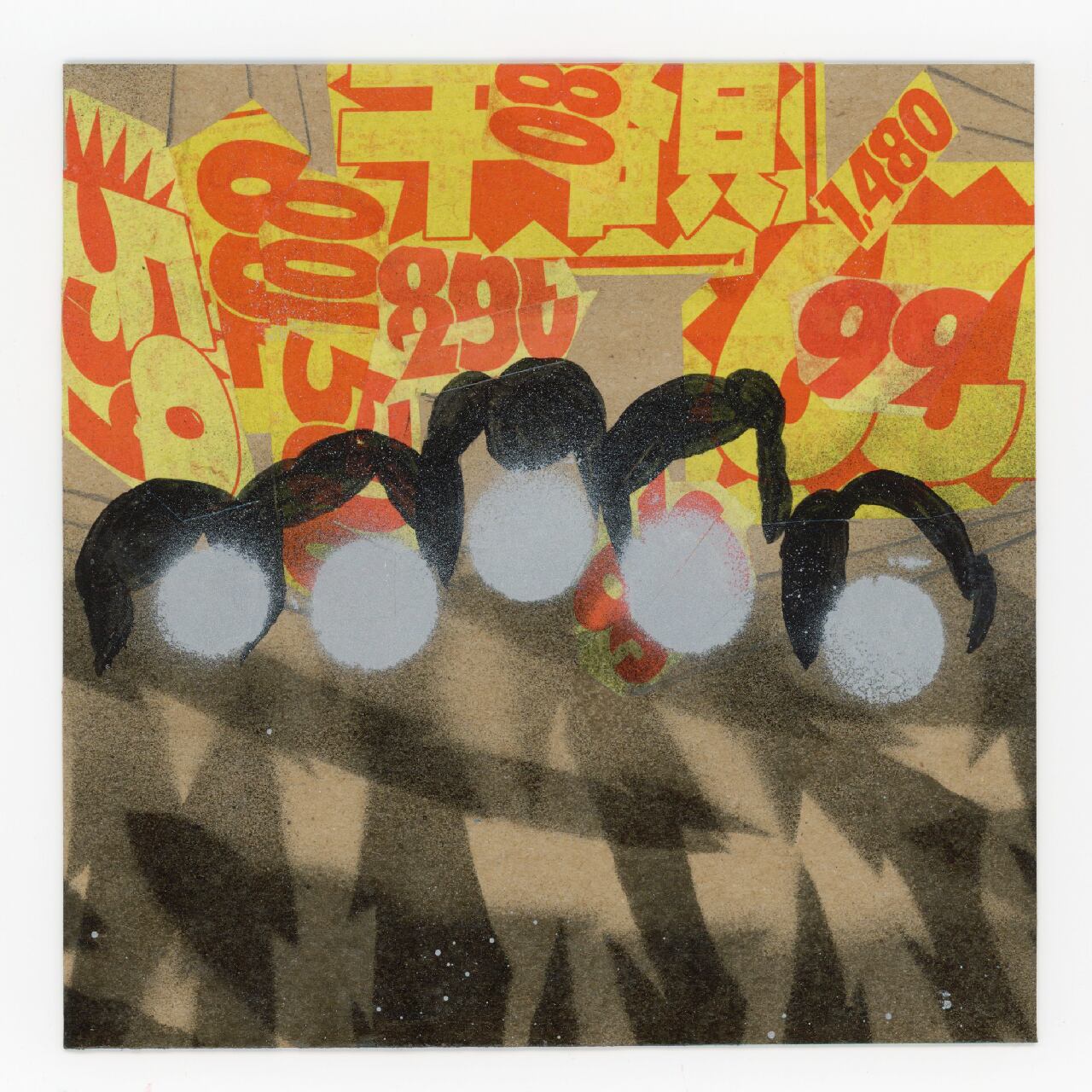 素材: 紙、スプレー、ガッシュ スーパーのチラシ 布