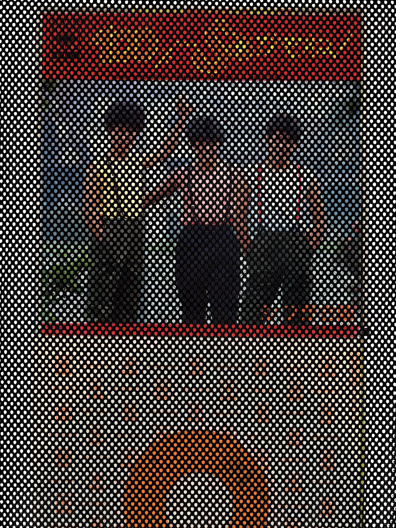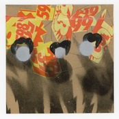 素材: 紙、スプレー、ガッシュ スーパーのチラシ 布