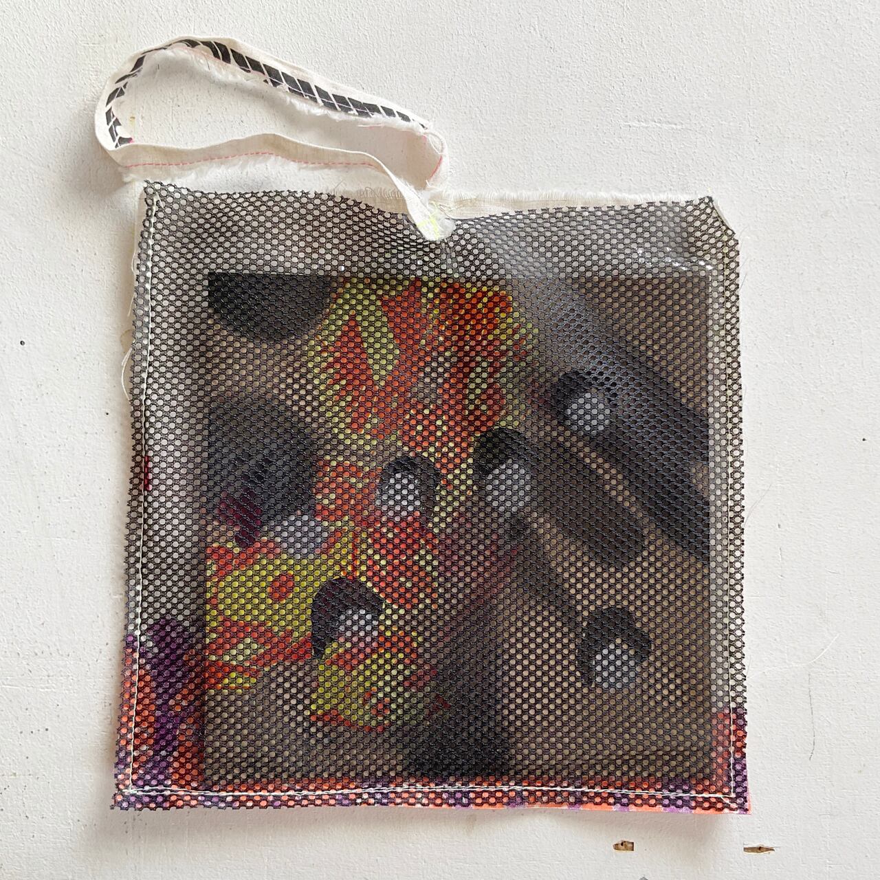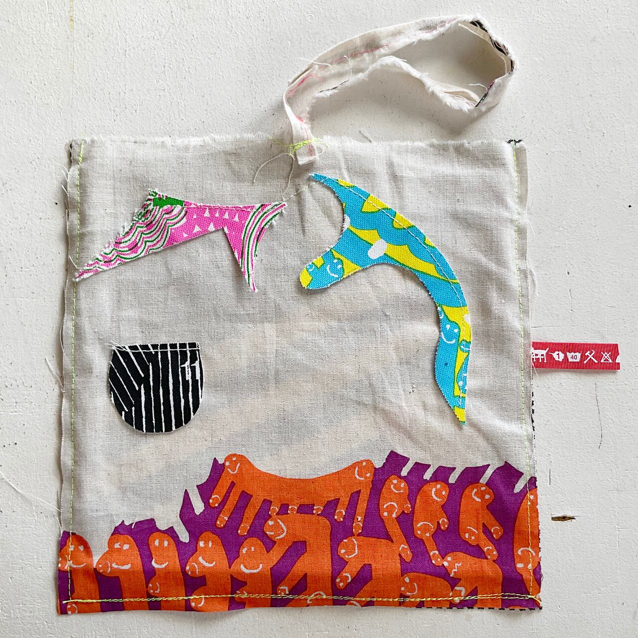 プリント生地のハギレで制作したバッグです。
