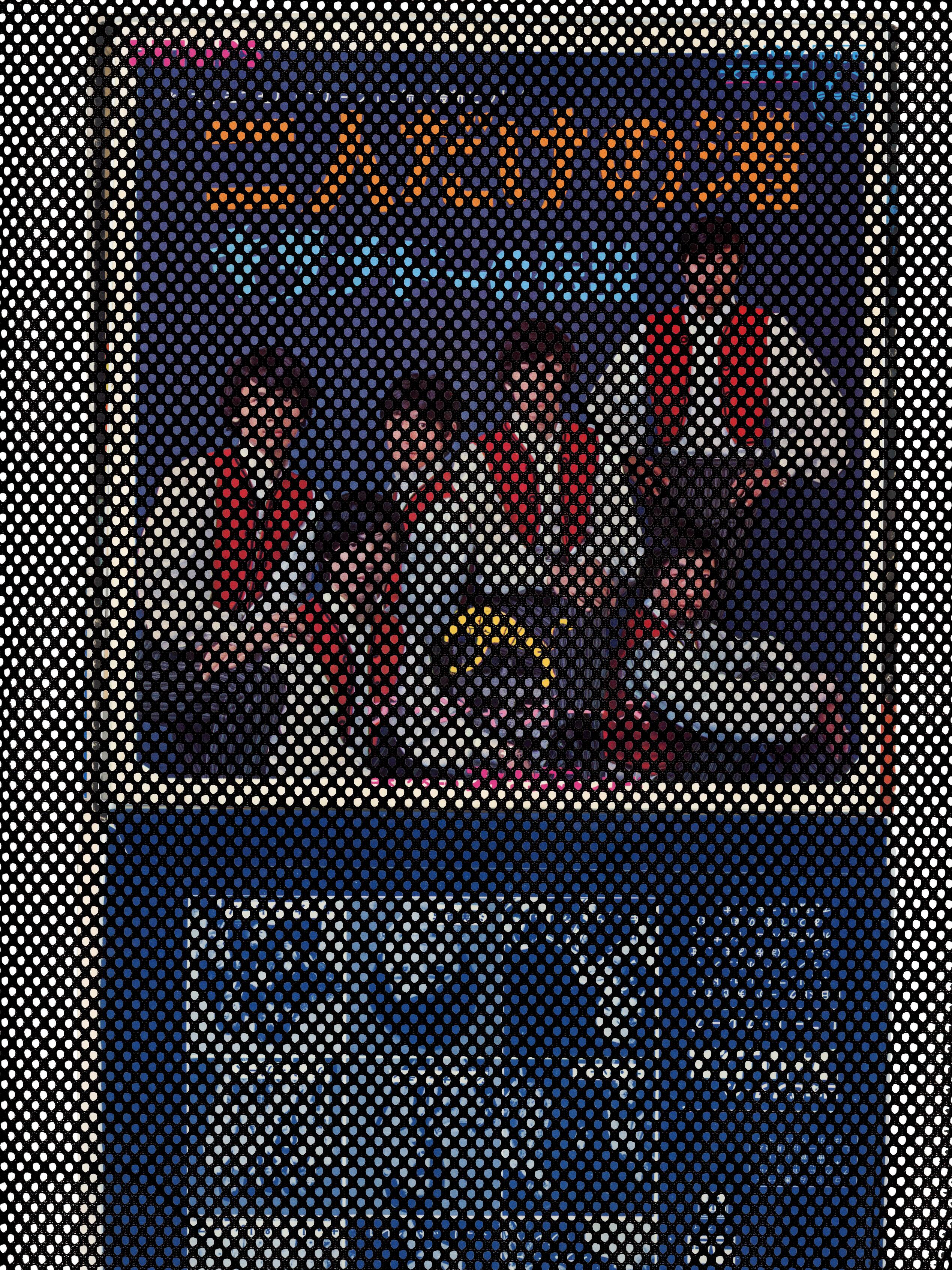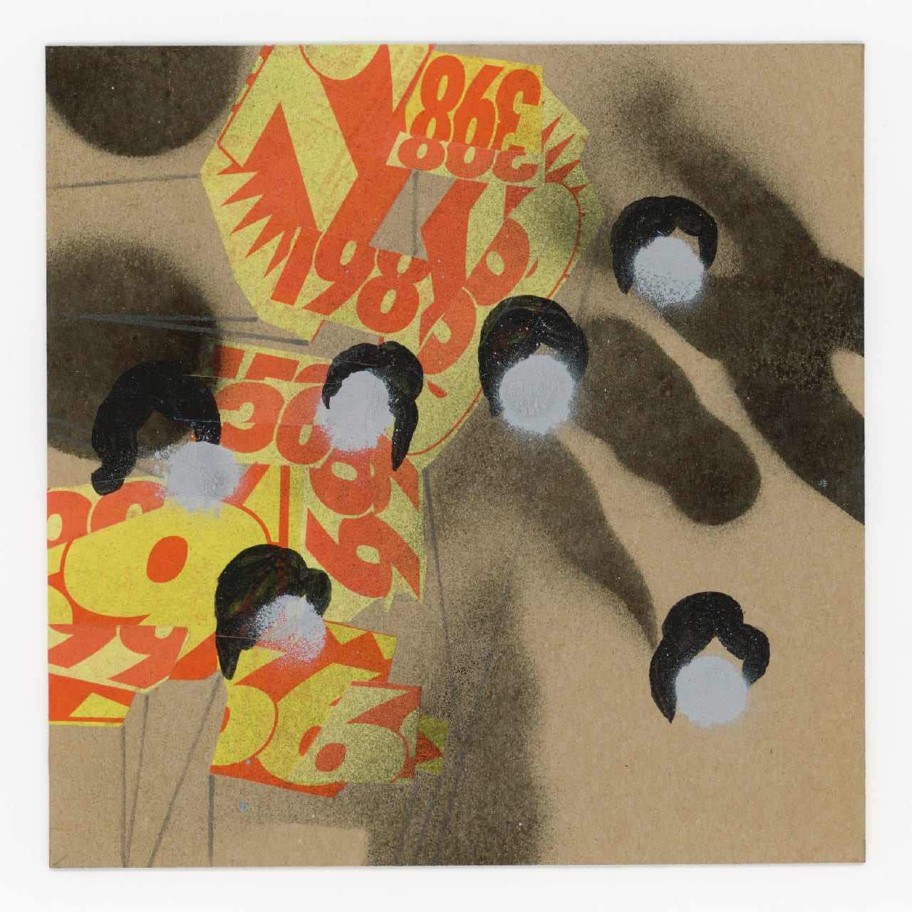 素材: 紙、スプレー、ガッシュ スーパーのチラシ 布