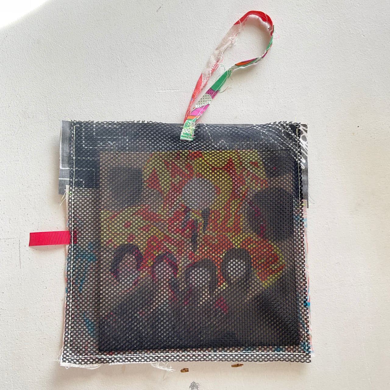 素材: 紙、スプレー、ガッシュ スーパーのチラシ 布