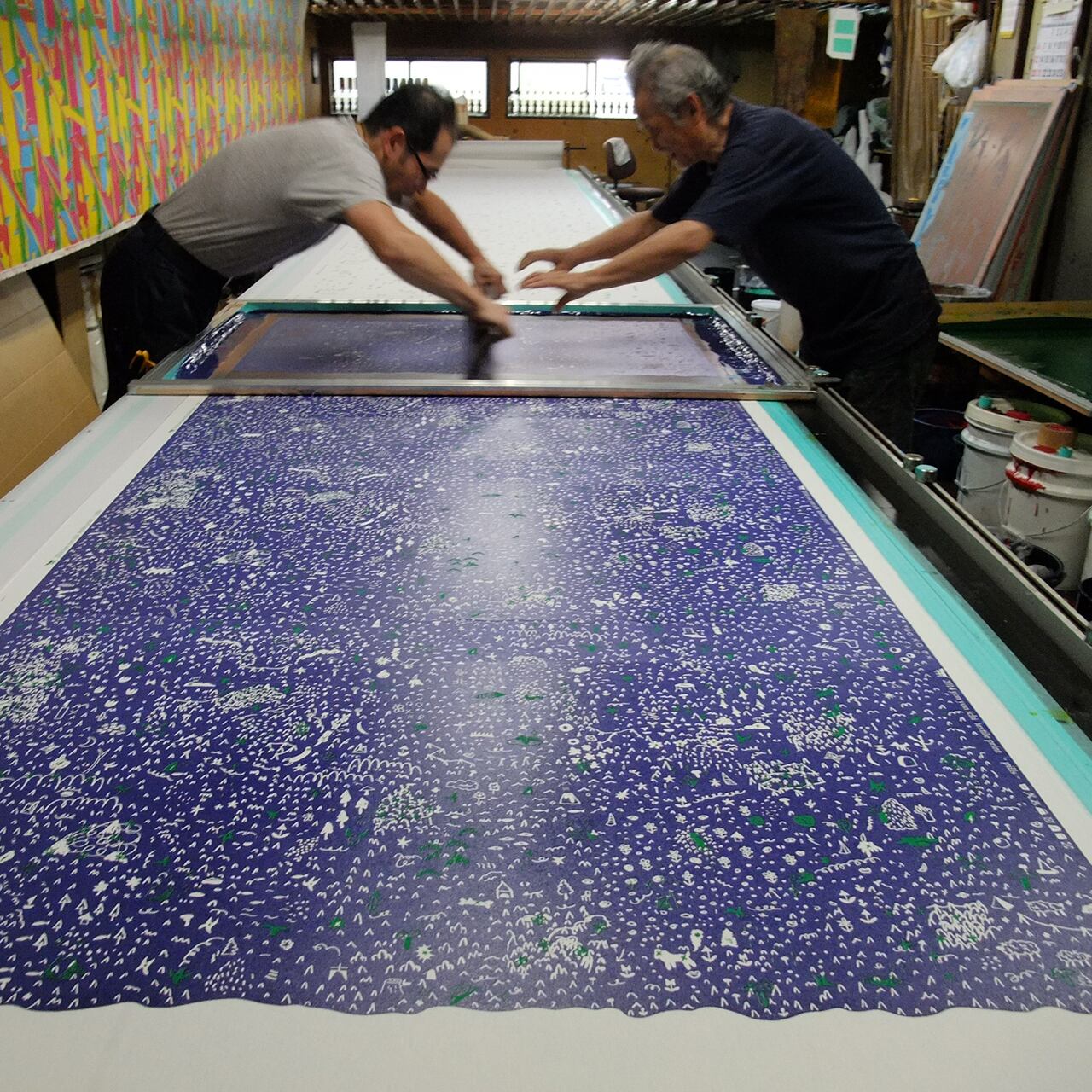 ●11号帆布と綾織生地に顔料でシルクスクリーンプリント
